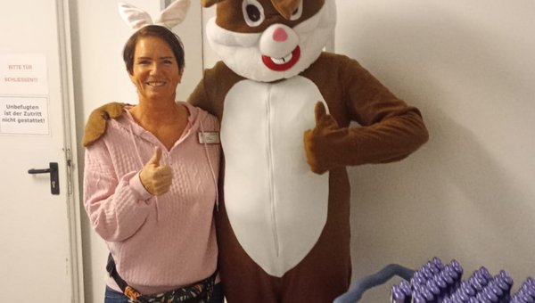 Mit Schokohasen und kleinen Präsenttütchen zogen die beiden durch alle Wohnbereiche und…